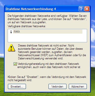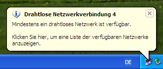 - Windows meldet, daß (mindestens) eine drahtlose Verbindung verfügbar