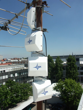 | Zwei (von 6) Antennen auf dem Rathausturm |